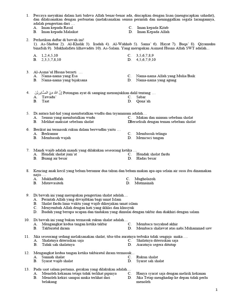 Contoh Soal PAI SMP Kelas 7 Semester 1 Beserta Pembahasan